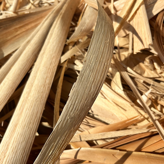 突板と染色糸を混ぜ合わせる際に