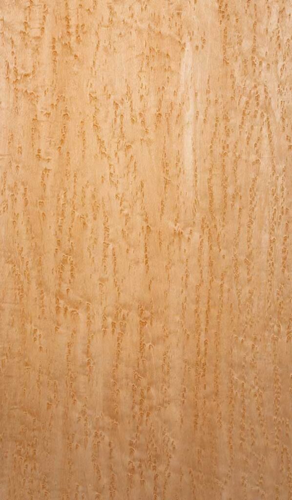 メープル材のうち「鳥眼杢」と呼ばれる鳥の眼状の美しい杢目が現れたものをバーズアイメープルと呼びます。はじめは通常のメープル材と同様に淡い色合いで杢眼が際立っており、時間の経過と共に全体があめ色に変色するため色調の濃淡がより明瞭となり美しさを増します。