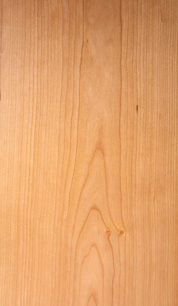 淡い紅褐色は時間とともに深い赤褐色に変化し経年変化を楽しむことができます。そのため、家具や内装材に多く使用されます。リップルマーク(さざなみ紋)やガムポケット(樹脂の斑点)などの模様もアメリカンチェリーの特徴です。