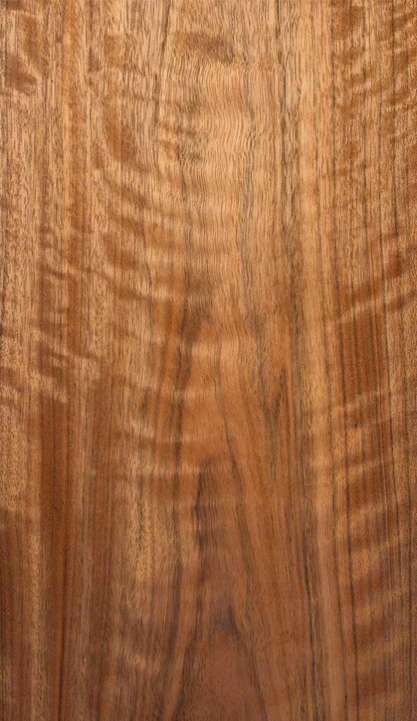 レオ 杢目 板 産地 アジア 色系統 ブラウン 科目 ウルシ科 特 徴 黄褐色や赤褐色、灰褐色など多様な色があり、杢目は交錯した褐色や黒色の濃い模様が現れます。木の左右へのねじれが交互に入り混じる繊維方向のうねり(交錯木理)によってリボン杢が現れることがあります。